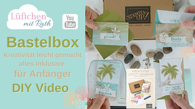 Tanja und ich basteln mit der zweiten neuen Bastelbox – Kreativität leicht gemacht. Alles ist dabei 🙂 Wir benutzen außer einer Schere und einem Schwammtuch nichts dazu! Die Boxen kannst Du ab dem 01.06.2021 bei uns bestellen.