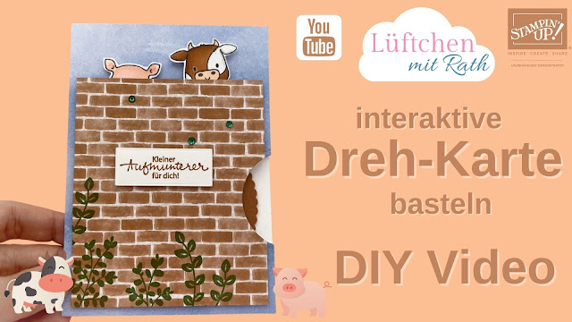 Tanja und ich basteln mit dem Stempelset „Peekaboo Farm“ von Stampin Up! eine lustige Drehkarte mit den Stanzformen “ Der richtige Dreh“ von Stampin‘ Up!
