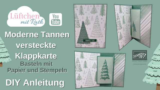 Ich habe mit Tanja eine Weihnachtskarte gebastelt mit dem Set BAUMZAUBER von Stampin Up! ® mit verstecktem Klapp-Effekt – Eine Hidden Flap Card.